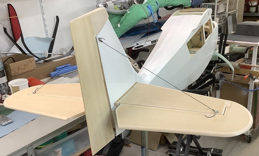 Danach war die Verspannung der Höhenruder dran. Da gibt’s keine fertigen Teile – nur ich, Säge, Feile und ein Haufen Geduld. Zum Ausrichten hab ich erstmal einfache Schnüre genommen. Später kommen ordentliche Stahlseile rein. Je nachdem, wo der Schwerpunkt am Ende landet, ersetze ich die unteren vielleicht durch stromlinienförmige Rohre. Der Gedanke dahinter: Wenn mal ein Draht reißt, bleibt das Höhenleitwerk trotzdem dran.