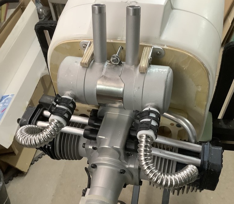 Diese Woche habe ich ein bisschen weitergemacht mit der Haube und den Auspuffschläuchen. Die Kurve vom Motor zum Auspuff ist eng, und weil alles schief ist, kann man es nirgendwo vernünftig festhalten. Ich überlege, ob ich doch besser selber einen Auspuff baue. Dann könnte ich die Anschlussrohre besser positionieren. Das mögliche Problem jetzt ist, dass alles unter der Haube passt, aber es gibt nicht viel Platz zwischen heißem Rohr und GFK-Haube. Die Kerzenstecker passen gerade nicht unter die Haube, also muss ich mal wieder etwas drucken. Weil das Teil selbst nicht so kompliziert ist, ist aber der Haubenanschluss überall krumm. Das heißt wirklich in 3D entwerfen. Ist aber auch wieder gelungen. Kommende Woche etwas basteln, um die Naht zwischen den Haubenteilen zu verschönern. Denke, ich werde da entweder Alu- oder VA-Blech nehmen. Meistens drucke ich erst Probeteile, bis es mir gefällt, und erst dann in richtiges Metall umsetzen. Das hintere Stück ist ziemlich gerade, vorne ist wegen der Krümmung der Haube das Teil bestimmt etwas weniger gerade. Schauen wir mal, was daraus kommt.